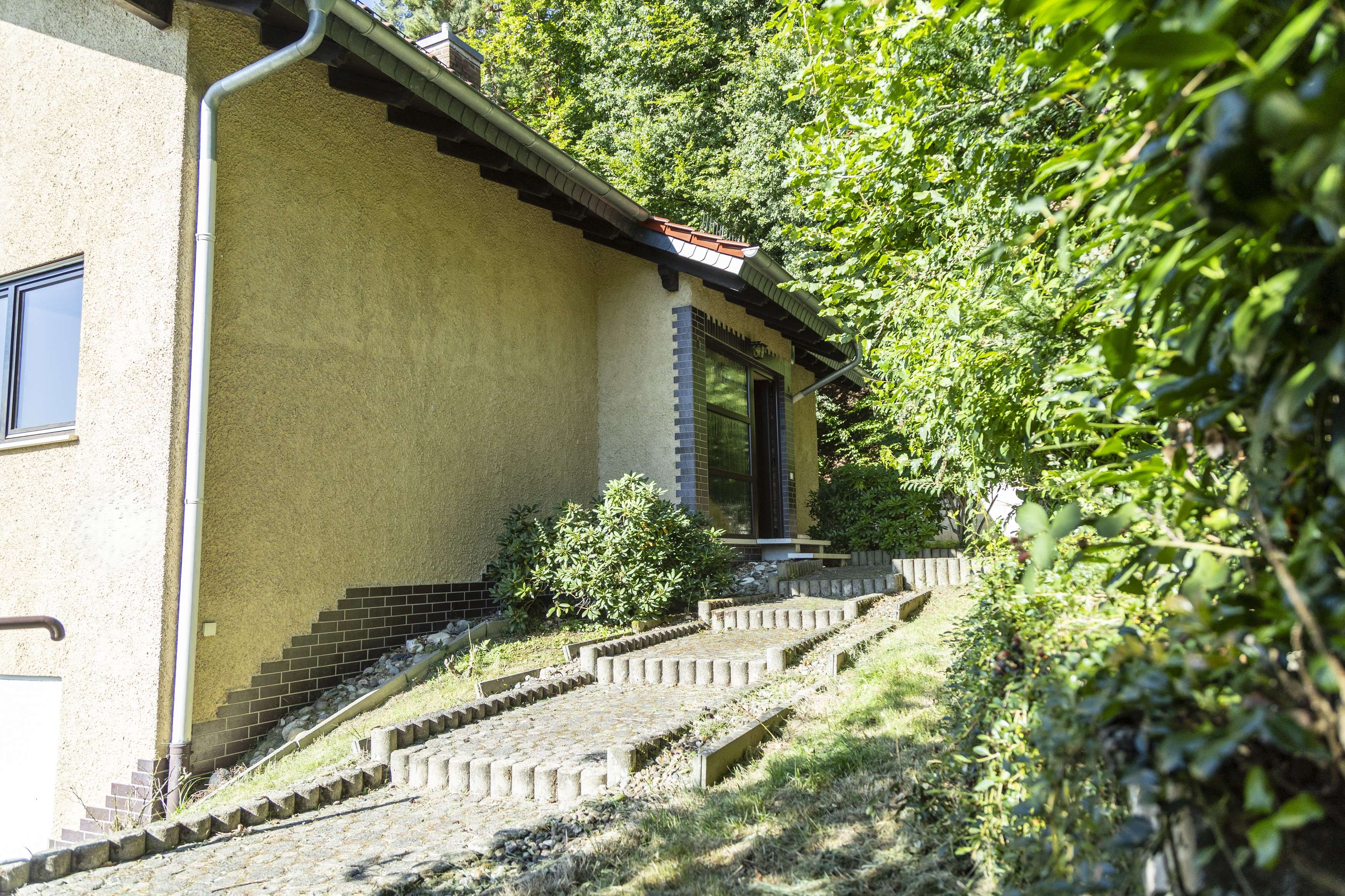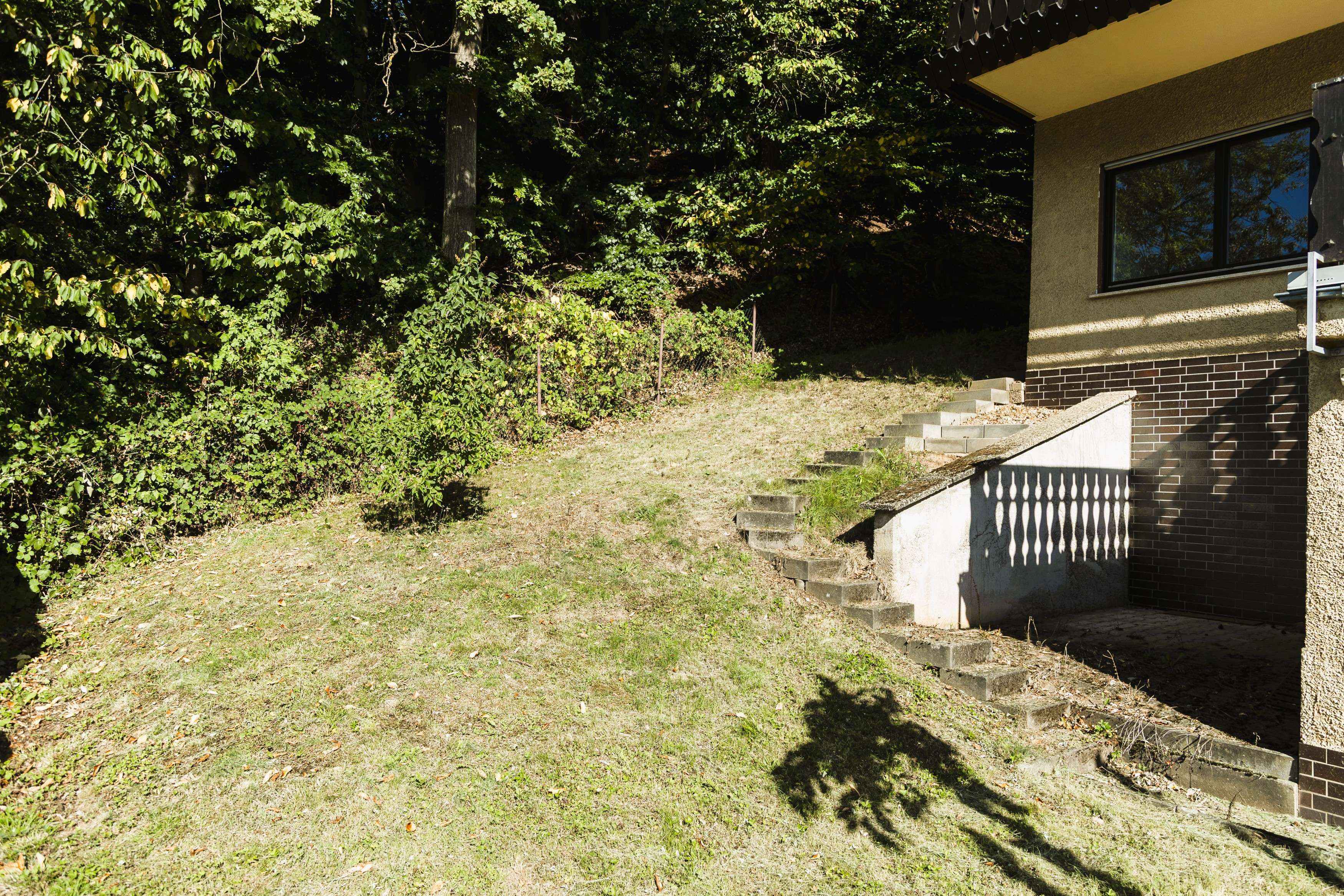 Die Immobilie liegt in einer ruhigen, grünen Umgebung mit nur einem direkten sichtbaren Nachbarn. Waldflächen umrahmen das Grundstück und bieten Erholung direkt vor der Haustür. Aufgrund der Hanglage sollten Sie das notwendige Treppensteigen mögen – wer sich darauf einlässt, wird mit einer besonderen Aussicht und einem schönen Wohngefühl belohnt.