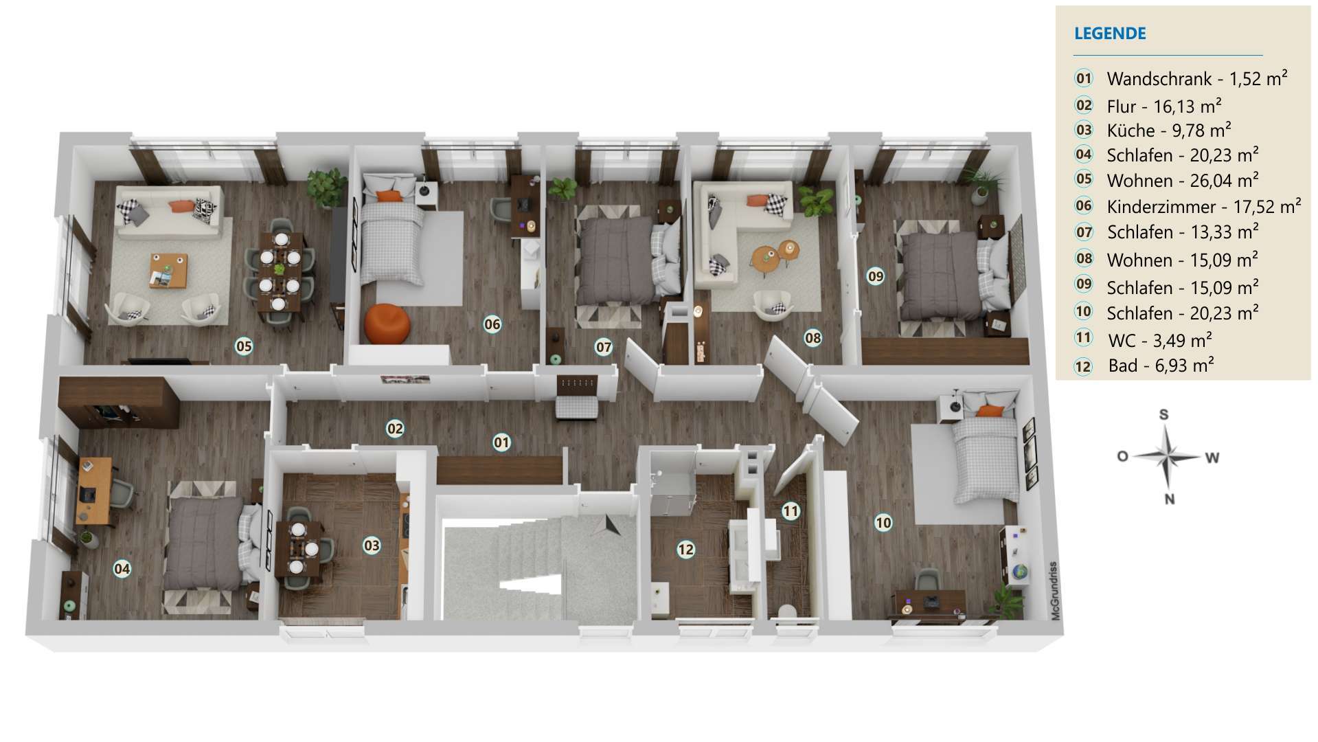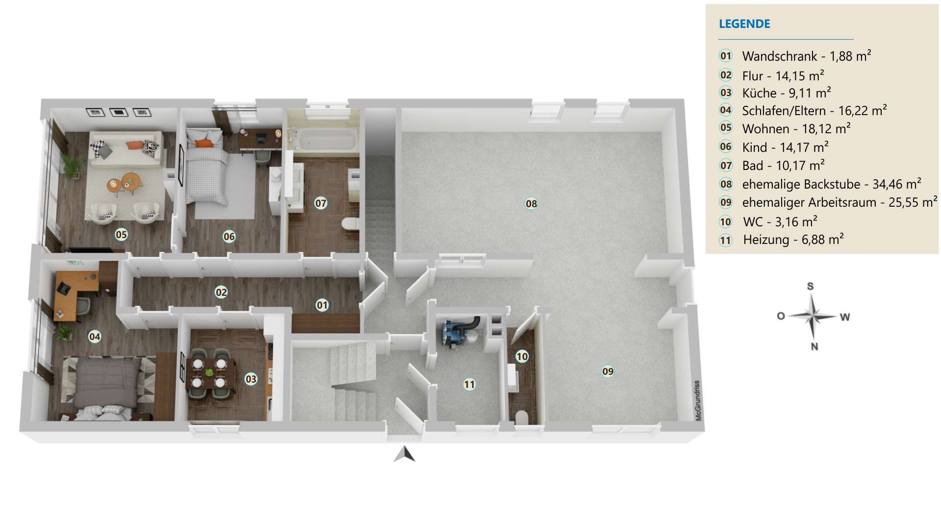 Hinweis: Die Innenaufnahmen wurden mit einem Weitwinkelobjektiv erstellt, um die Räume möglichst anschaulich darzustellen. Es kann daher zu leichten Abweichungen bei der Größenwirkung kommen.
