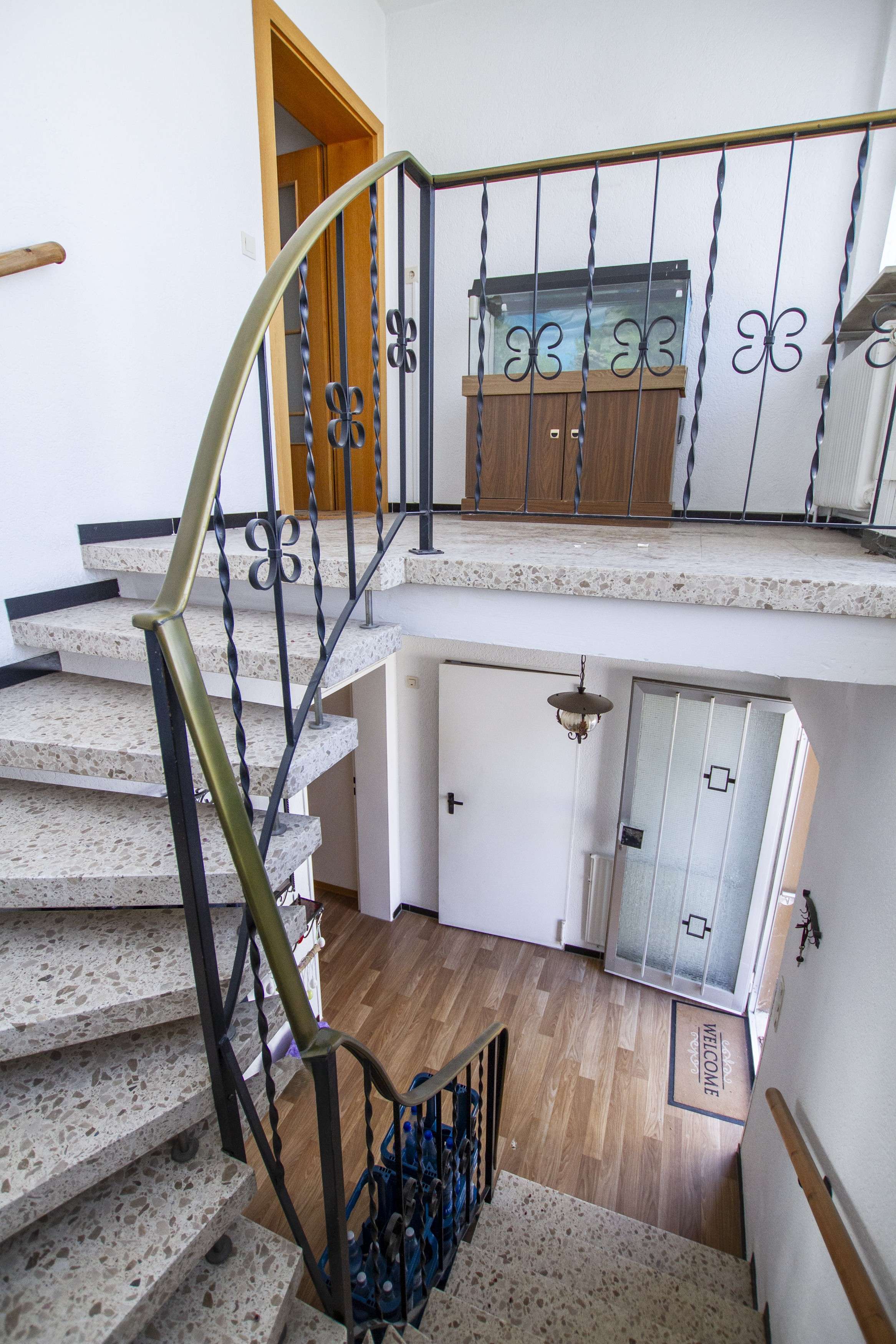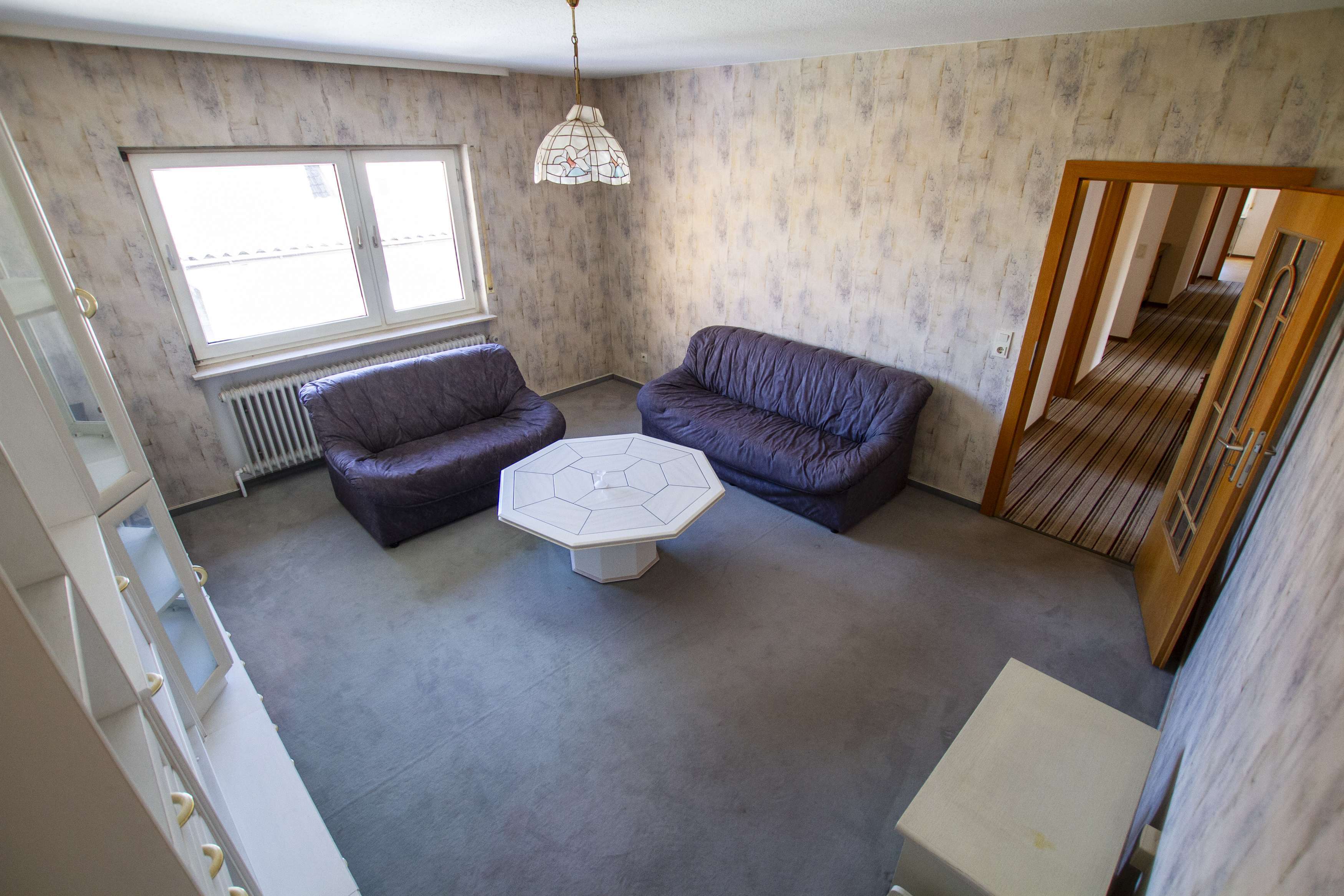 Die großzügige Wohnung im Obergeschoss bewohnten mehrere Generationen der Bäckerfamilie selbst. Sie steht aktuell leer und ist größtenteils geräumt. Der Zustand entspricht überwiegend dem Stil der 1970er Jahre.